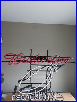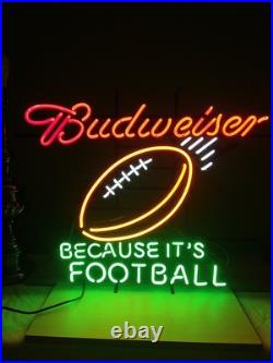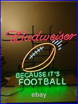Illuminate your space with a touch of vintage charm using this Budweiser neon sign, tailored to add a spirited ambiance to any room. The sign features a classic red, green, and white color scheme, perfect for creating a cozy atmosphere in a beer bar, pool room, karaoke lounge, pub, coffee spot, or game room. Its durable neon glass and sleek black metal frame ensure that this piece will stand out as a distinctive landmark in your establishment. Designed to operate on AC 110V-240V, this handmade light lamp is a testament to craftsmanship, with no modifications from its original design. The sign’s customized colors and the inclusion of’Because It’s Football’ enhance the appeal, making it a unique and eye-catching addition to your decor. Whether it’s for a collector or to add a retro flair to your venue, this neon sign is a brilliant choice for creating an unforgettable atmosphere.